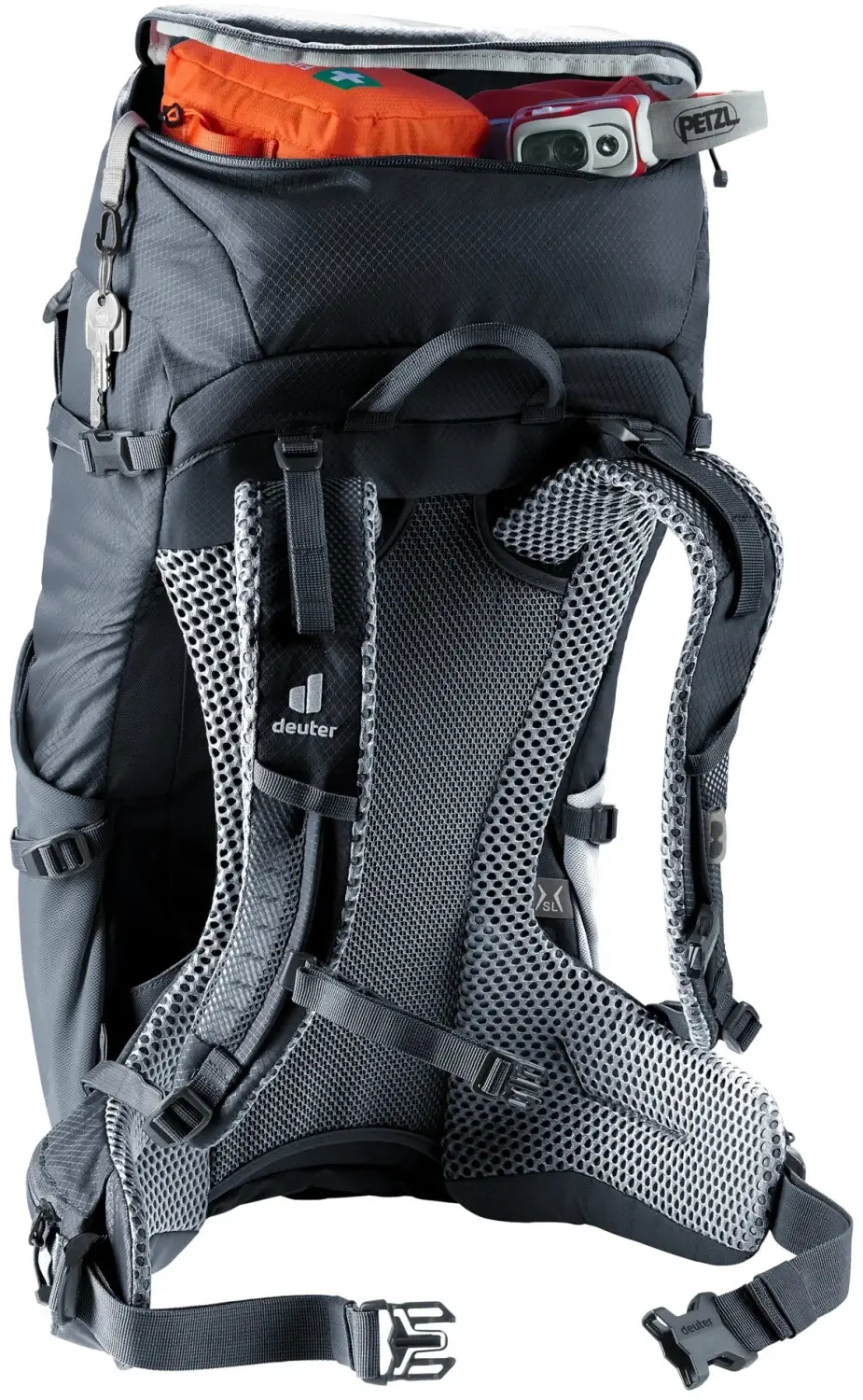 Dieses Modell ist eine SL-Version. Das frauenspezifische der SL-Rückenlänge zeigt sich bereits bei der Rückenlänge: Frauen haben im Durchschnitt einen nicht ganz so langen Rücken wie Männer. Das Tragesystem der SL-Modelle ist deshalb etwas kürzer angelegt als bei den Deuter Standard-Rucksäcken. Zudem ist das Tragesystem speziell an die weibliche Anatomie angepasst.