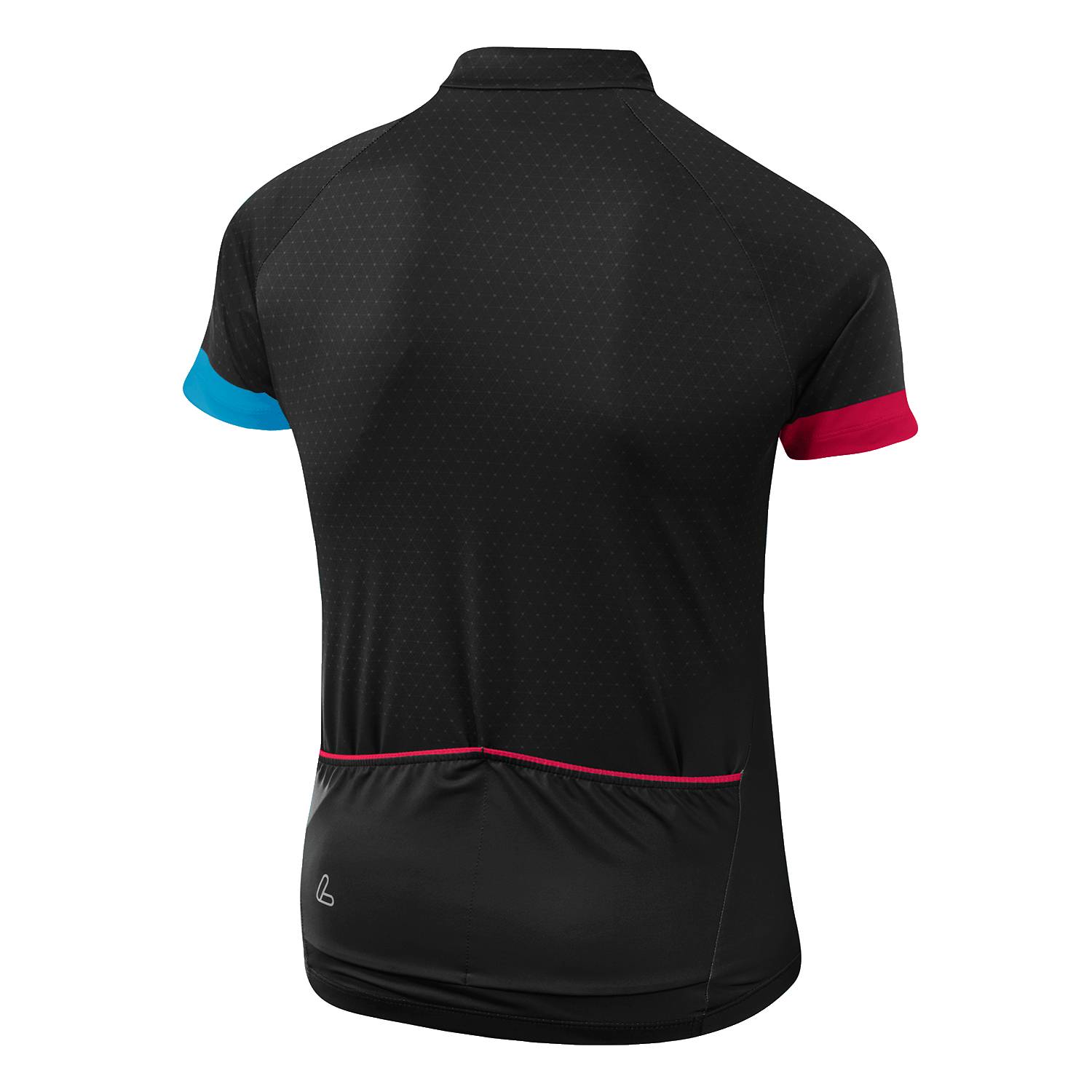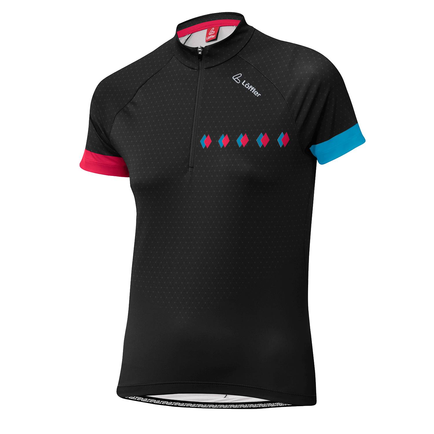 Race-Elastic, leicht, elastisch, schnell trocknend, atmungsaktiv, Allover bedruckt, Stehkragen,Halfzip, Kurzarm, Raglanschnitt, offener Armabschluss, 2er Rückentaschen, Silikonbundabschluss, Reflektoren.