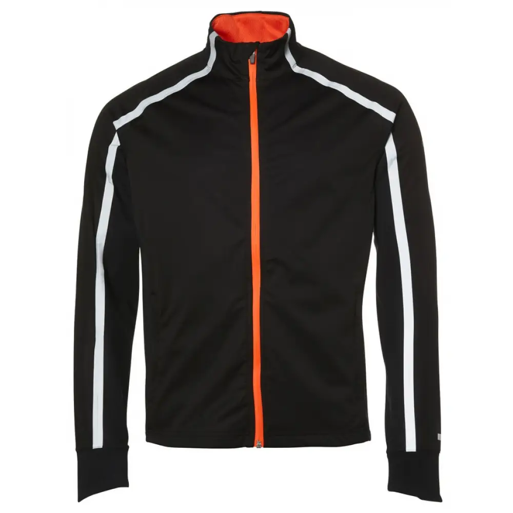 Diese Laufjacke von North Bend ist eine leichte, dünne Softshelljacke, besitzt eine weich angeraute Innenseite, ist winddicht und wasserabweisend. Dadurch ist sie der perfekte Begleiter für nasse, kalte Herbsttage. Der Reißverschluss ist verschweißt und farbig in orange abgesetzt. Vom Kragen erstreckt sich auf beiden Seiten ein langer Reflektorstreifen den Ärmel herunter, sodass Du auch in Dunkelheit gut gesehen wirst. Auch im unteren Rückenbereich sind zwei Reflektorstreifen eingearbeitet. Seitlich befinden sich zudem im vorderen Bereich noch Reißverschlusstaschen, um Schlüssel oder ähnliches zu verstauen.